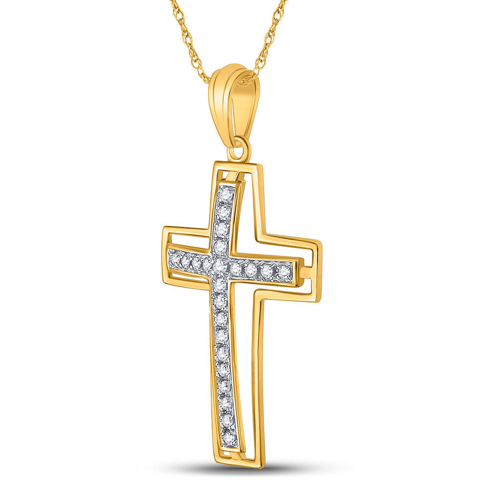 Keene Jewelers 10kt Yellow Gold Womens Round Diamond Cross Pendant 1/4 Cttw