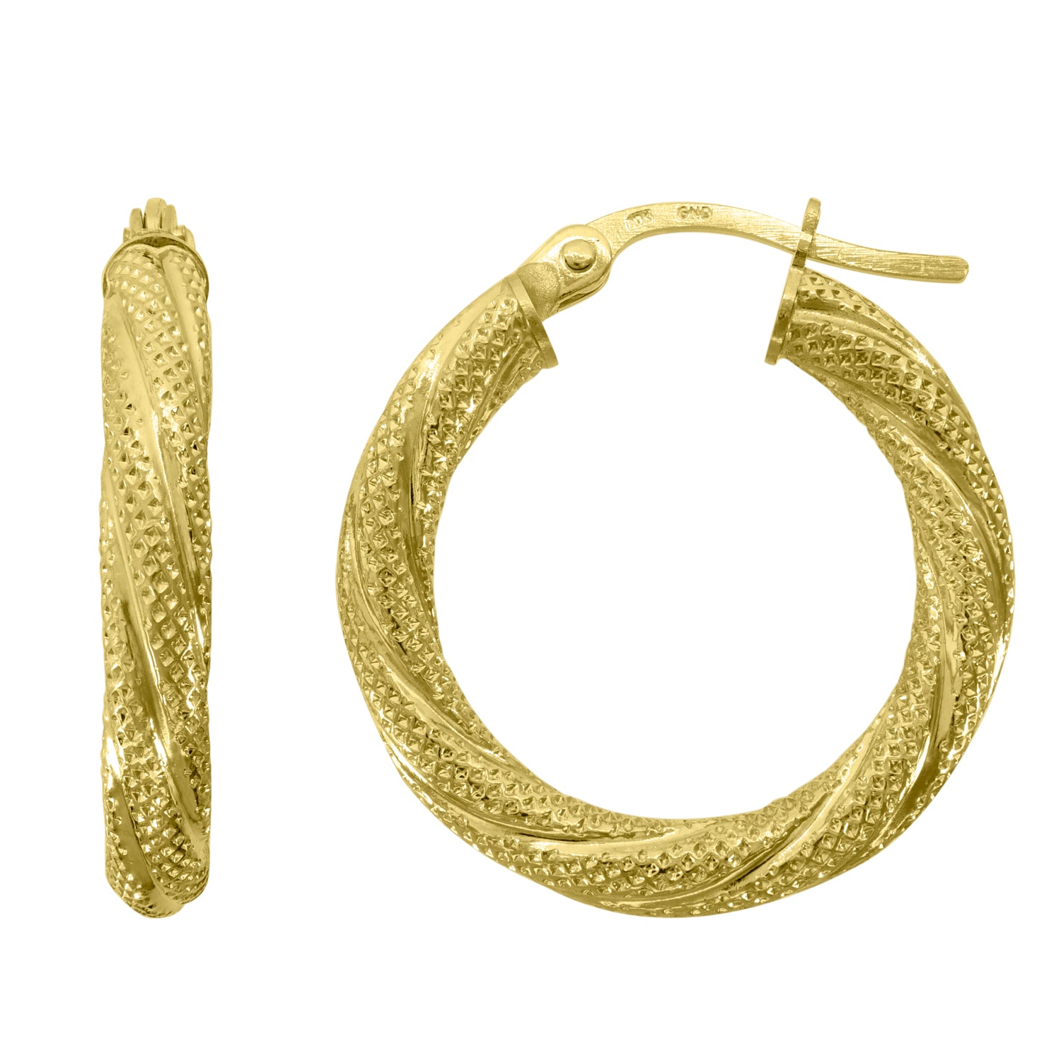Keene Jewelers 10kt Yellow Gold Womens Twisted Tube 15mm Hinged Hoops Huggies
