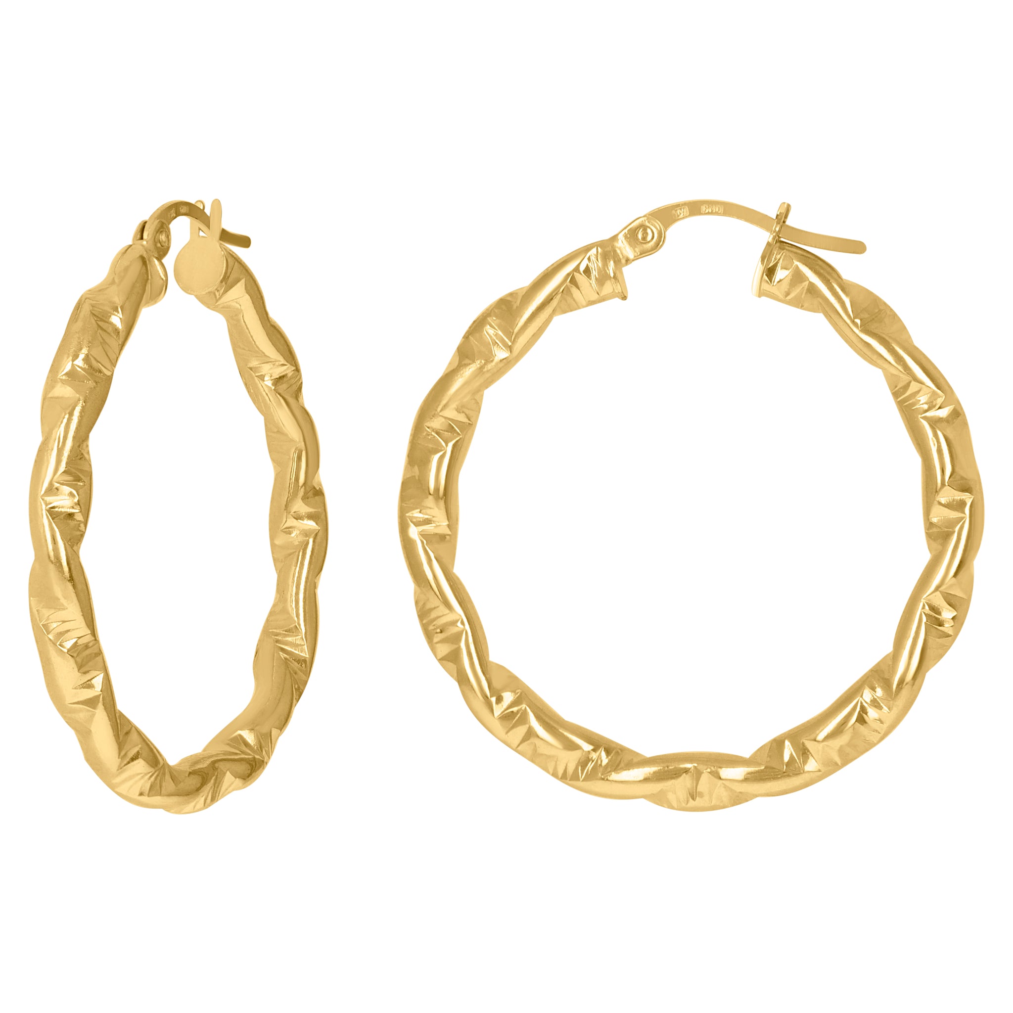 Keene Jewelers 10kt Yellow Gold Womens Twisted Tube DC Brushed 3mm x 10mm Hinged Hoops Huggies