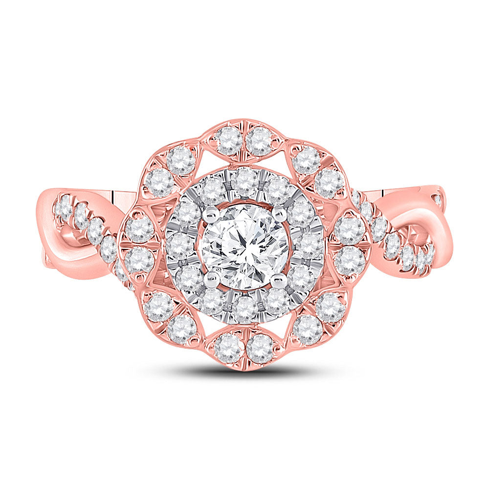Keene Jewelers 14kt Rose Gold Round Diamond Halo Bridal Wedding Engagement Ring 7/8 Cttw