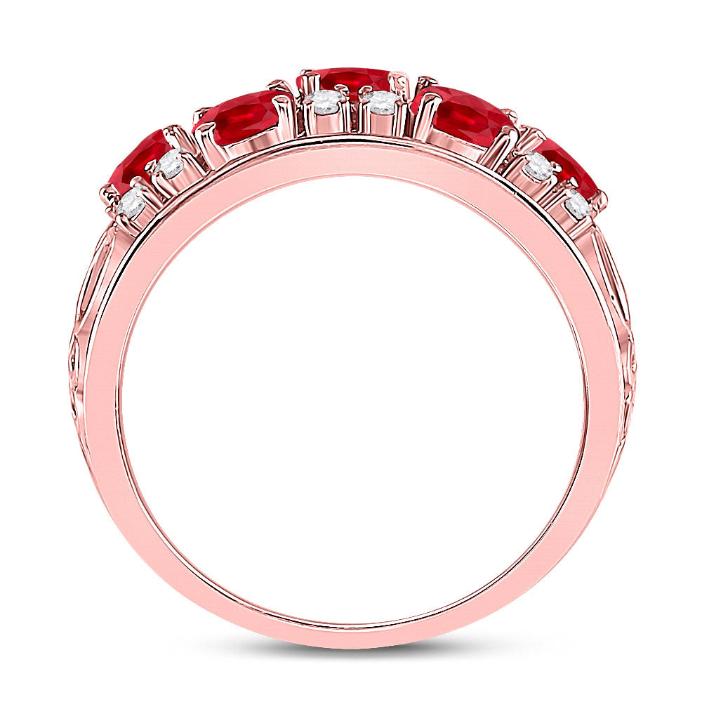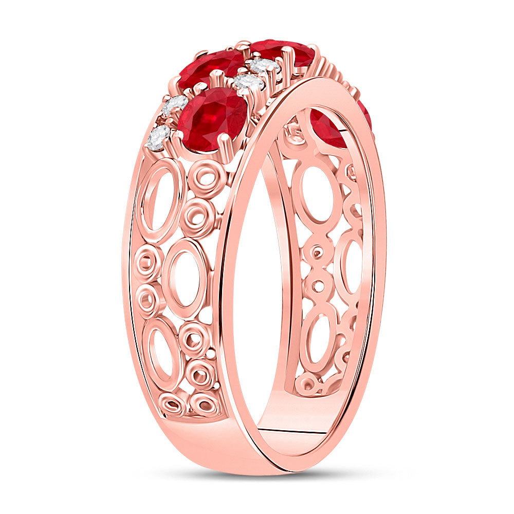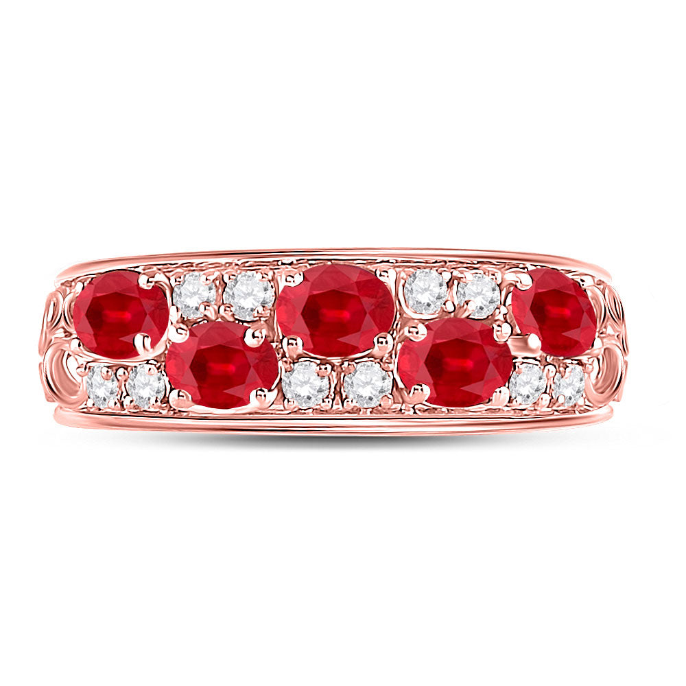 Keene Jewelers 14kt Rose Gold Womens Oval Ruby Diamond Alternating Band Ring 1-1/5 Cttw