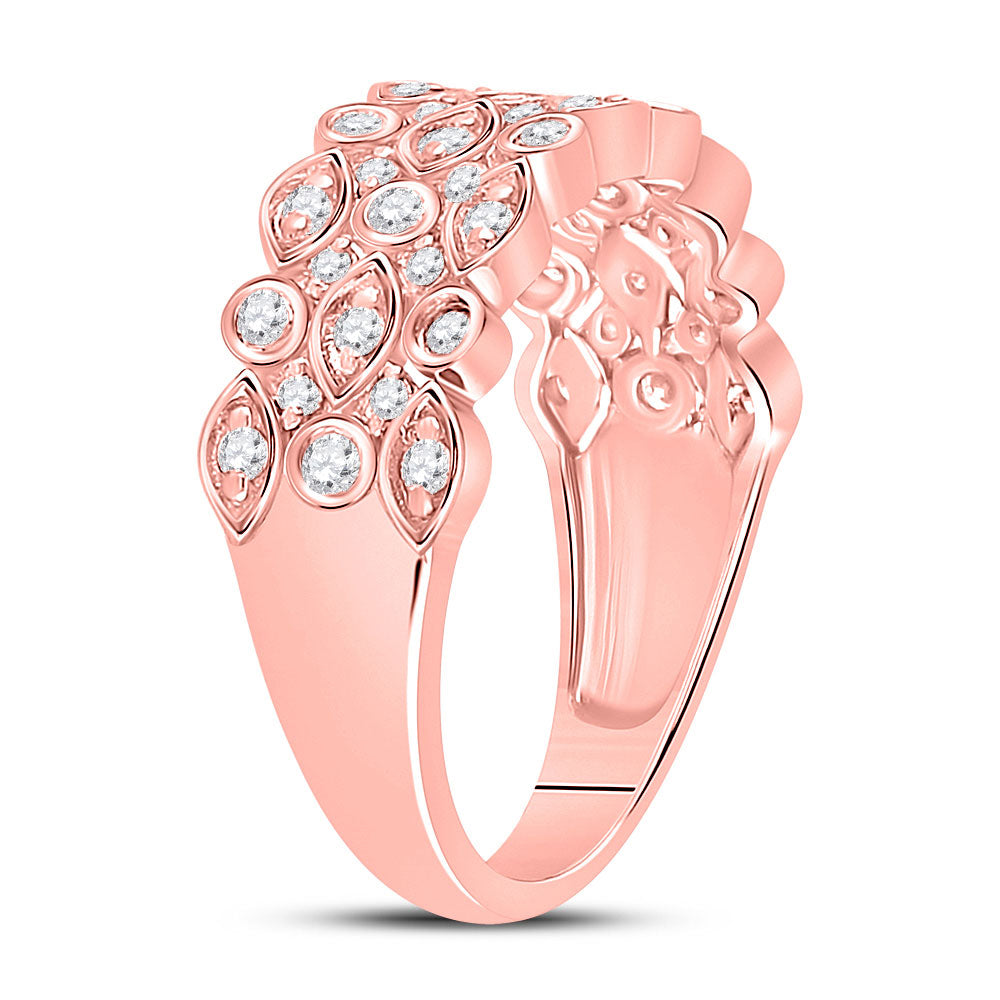 Keene Jewelers 14kt Rose Gold Womens Round Diamond 3-Row Marquise Dot Band Ring 3/4 Cttw
