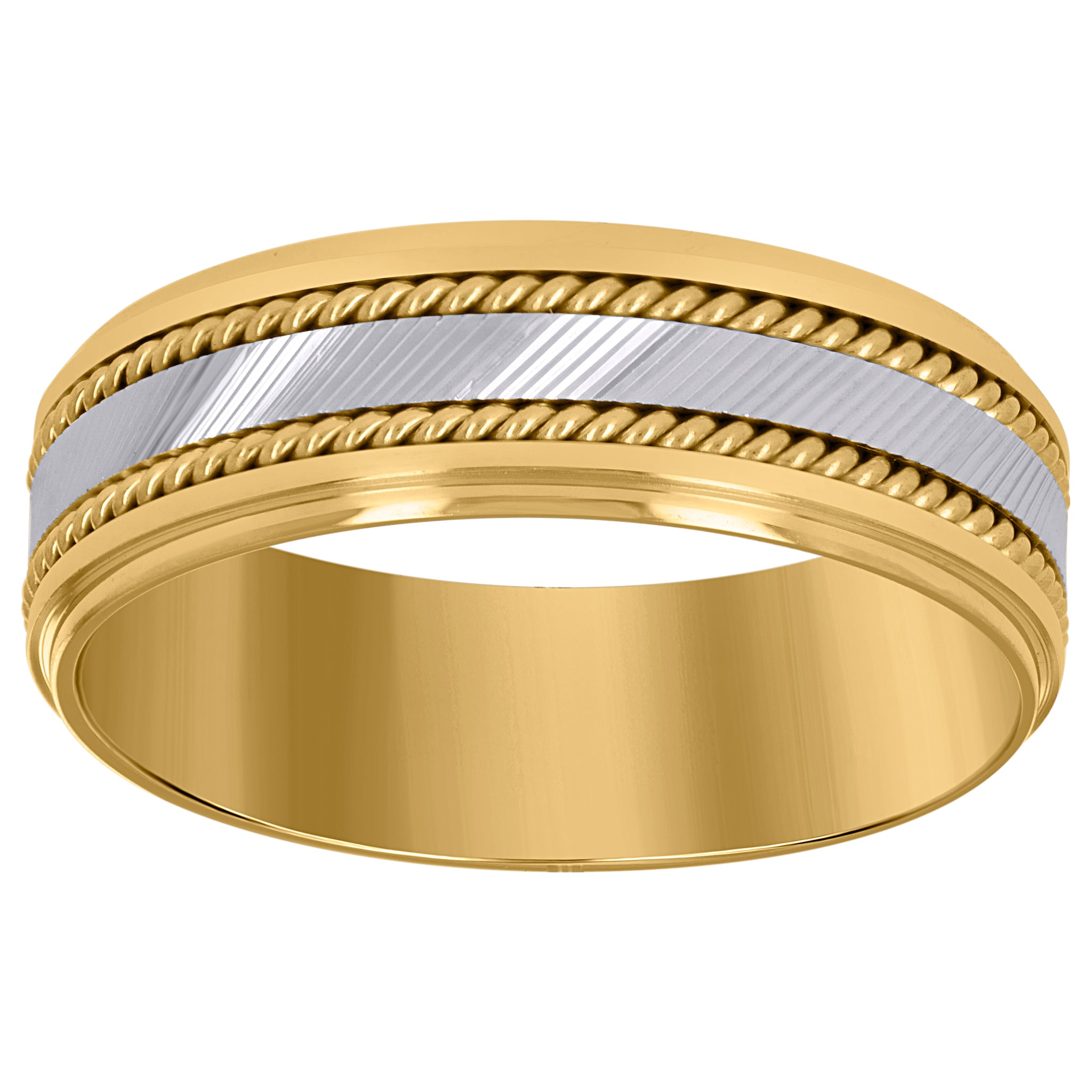 Keene Jewelers 14kt Two-tone Gold Mens Textured Center Textured Milgrain Wedding Band Ring 6.5mm