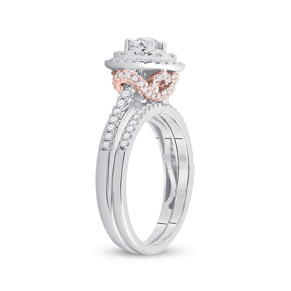 Keene Jewelers 14kt Two-tone Gold Round Diamond Bridal Wedding Ring Band Set 1 Cttw