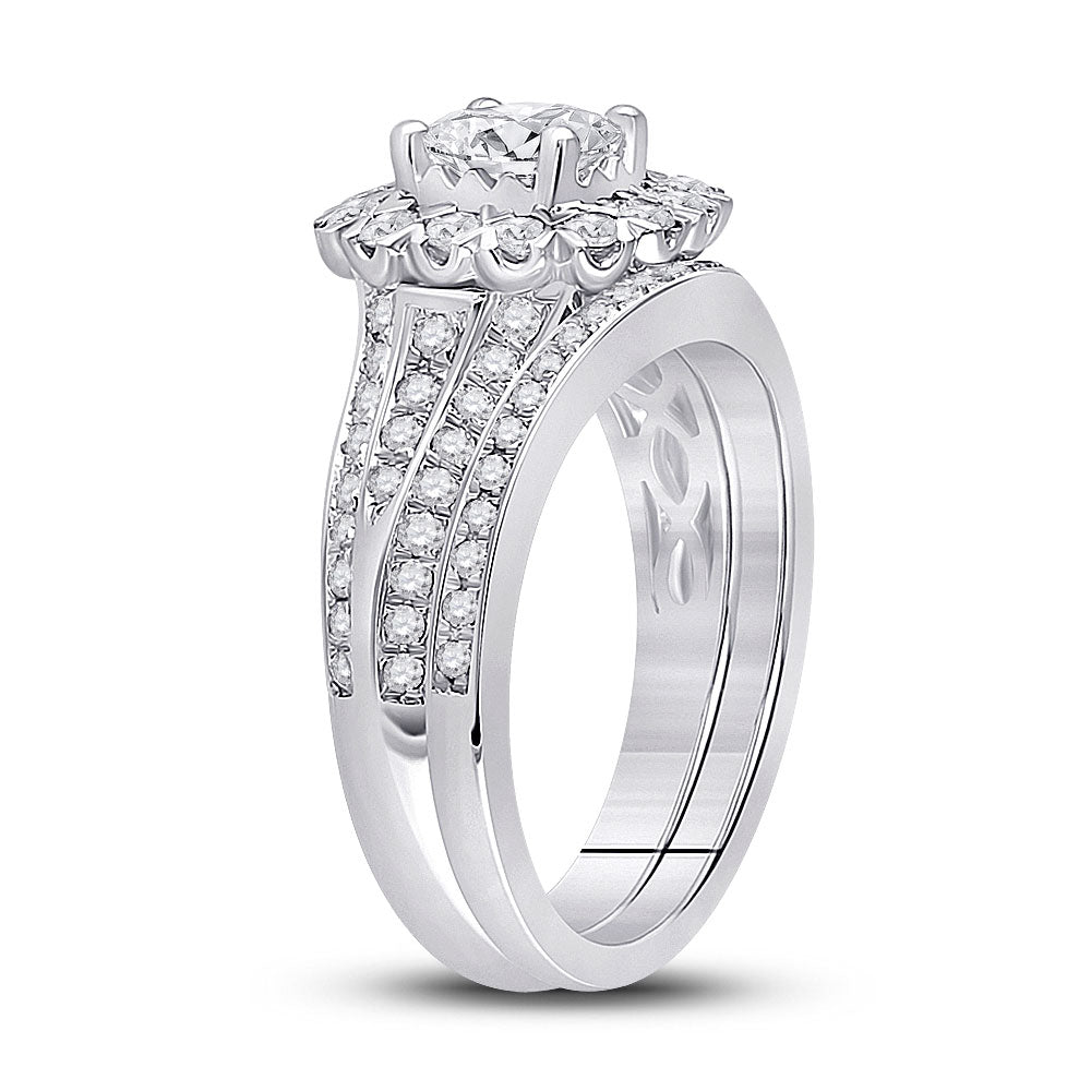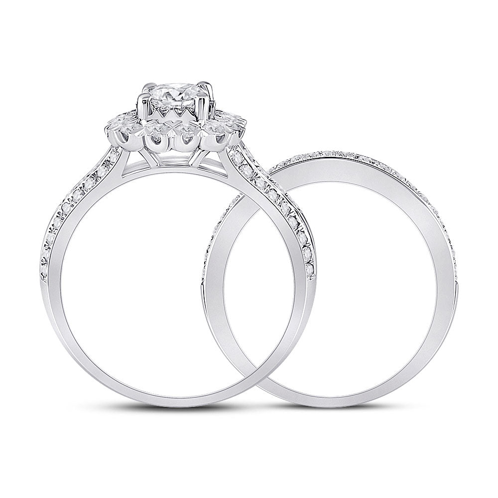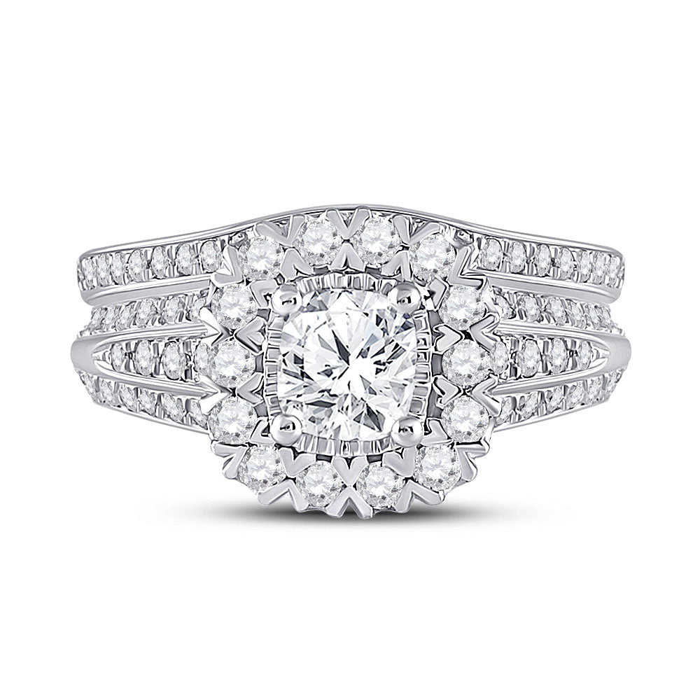 Keene Jewelers 14kt White Gold Cushion Diamond Bridal Wedding Ring Band Set 1-1/2 Cttw