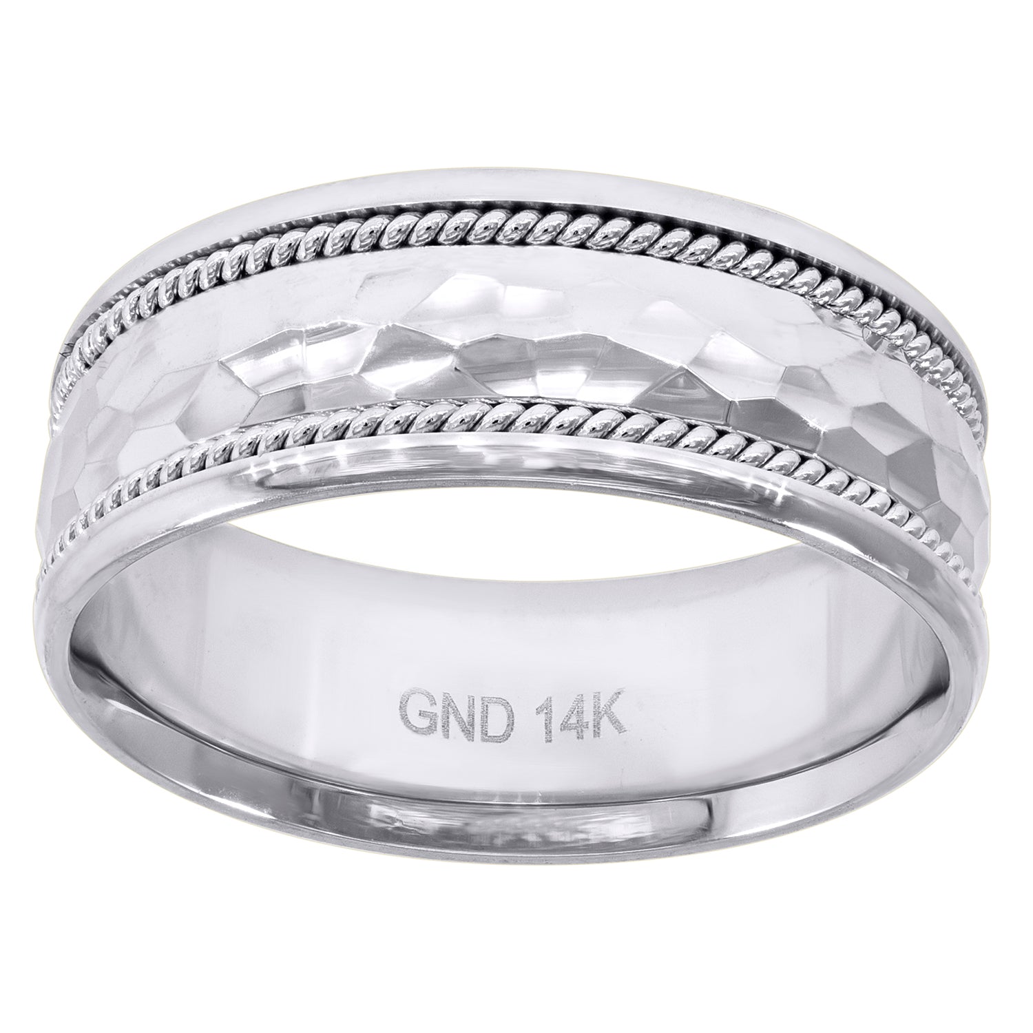 Keene Jewelers 14kt White Gold Mens Hammer Finished Wedding Band Ring 8mm