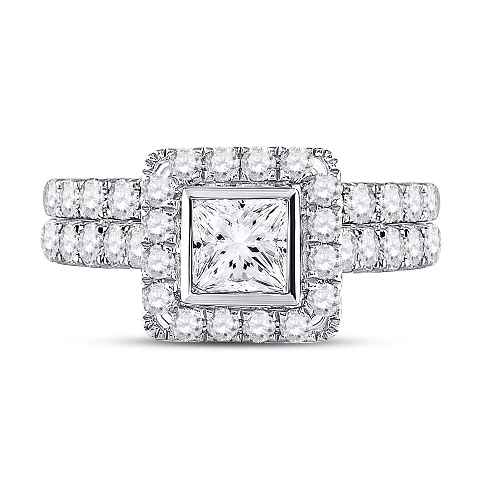 Keene Jewelers 14kt White Gold Princess Diamond Bridal Wedding Ring Band Set 2 Cttw