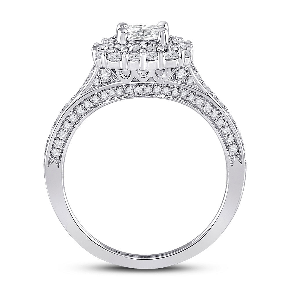 Keene Jewelers 14kt White Gold Princess Diamond Halo Bridal Wedding Engagement Ring 1-1/2 Cttw