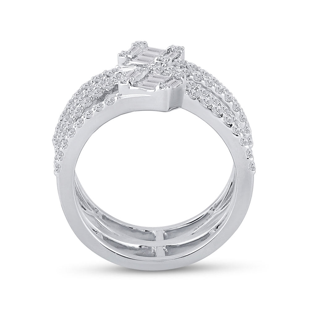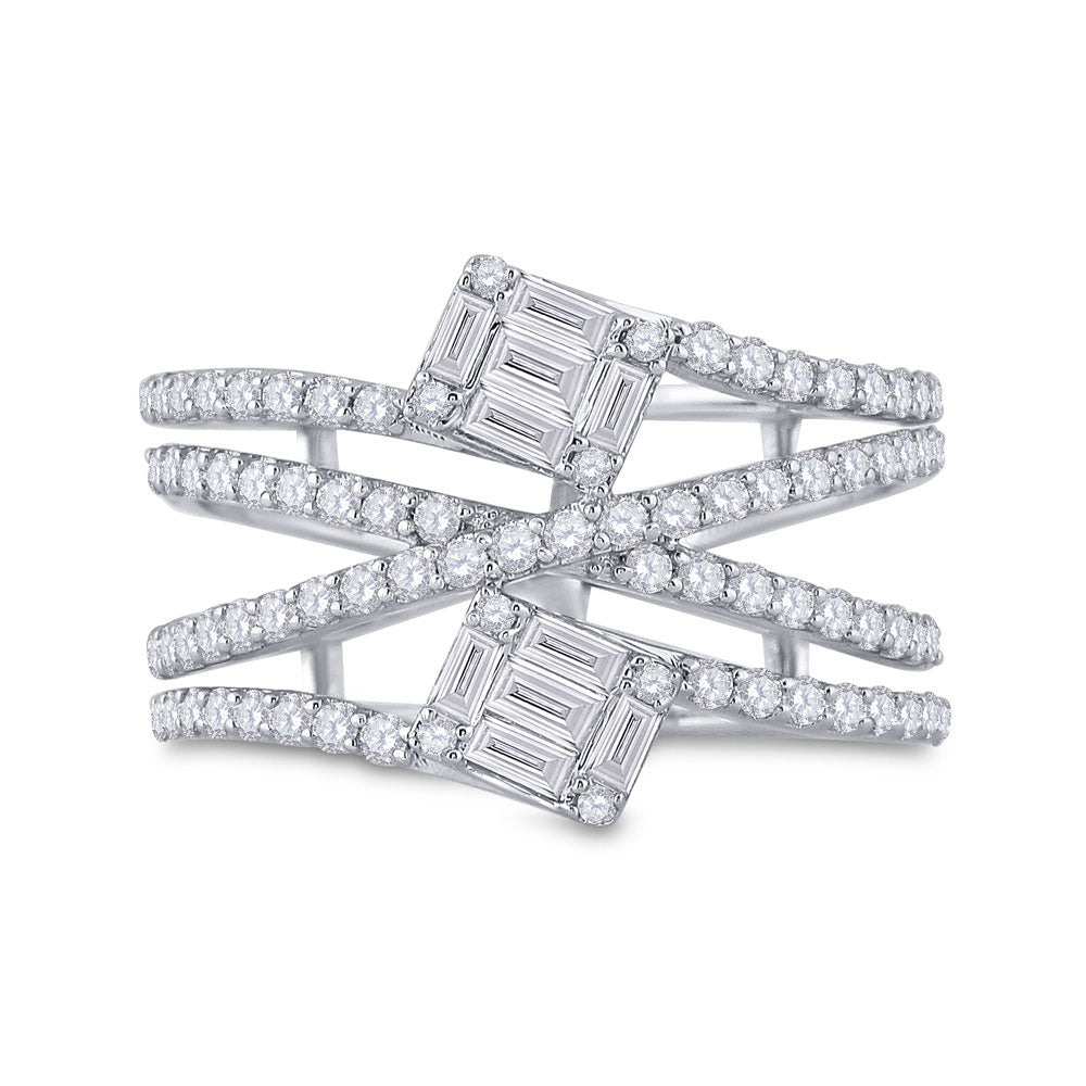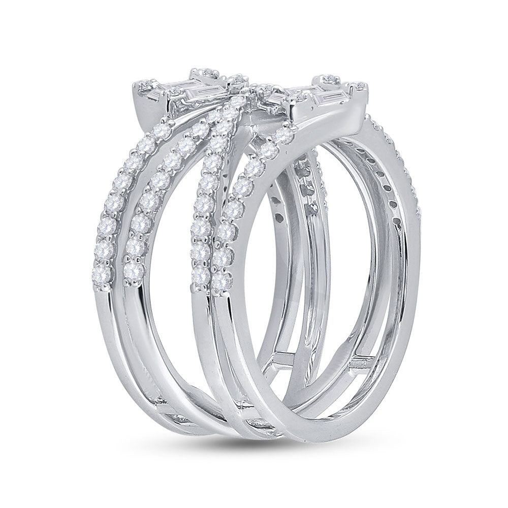 Keene Jewelers 14kt White Gold Womens Baguette Diamond Spiral Fashion Ring 1 Cttw