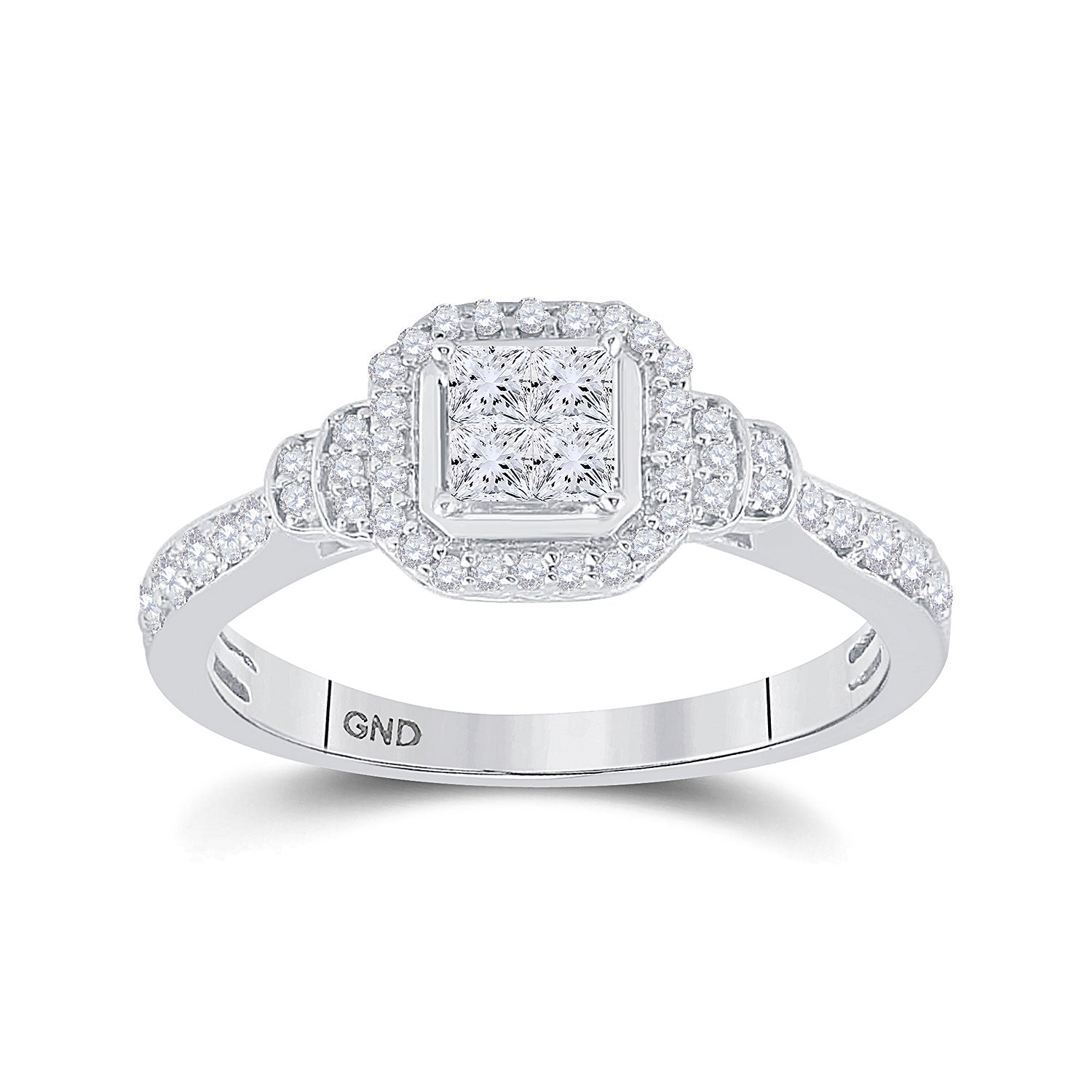 Keene Jewelers 14kt White Gold Womens Princess Diamond Fashion Ring 1/2 Cttw