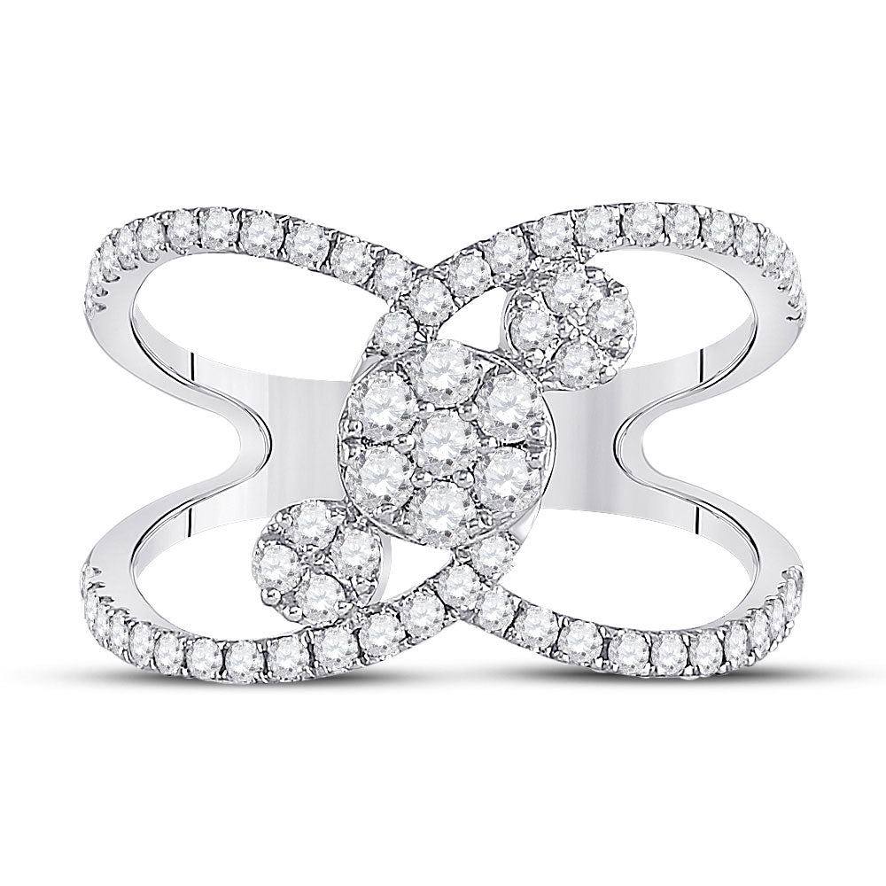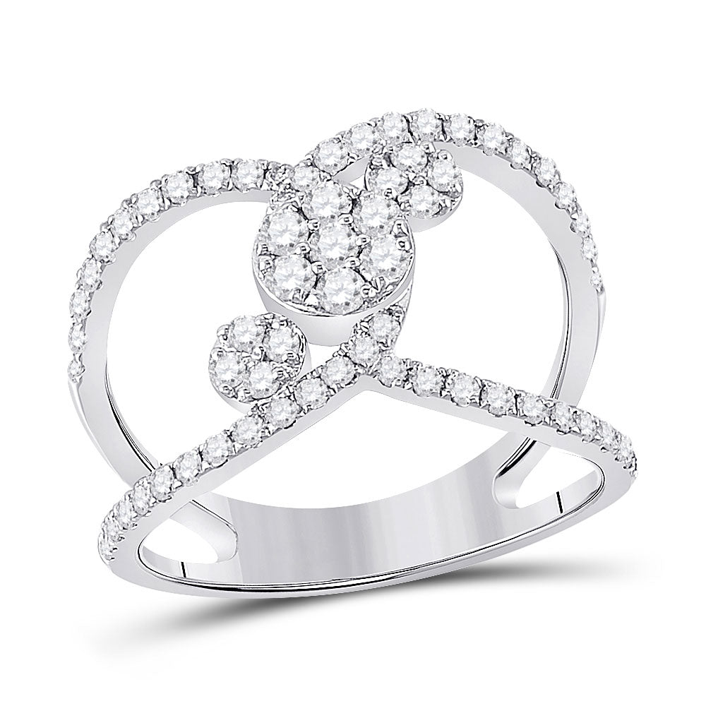 Keene Jewelers 14kt White Gold Womens Round Diamond Negative Space Cluster Ring 3/4 Cttw