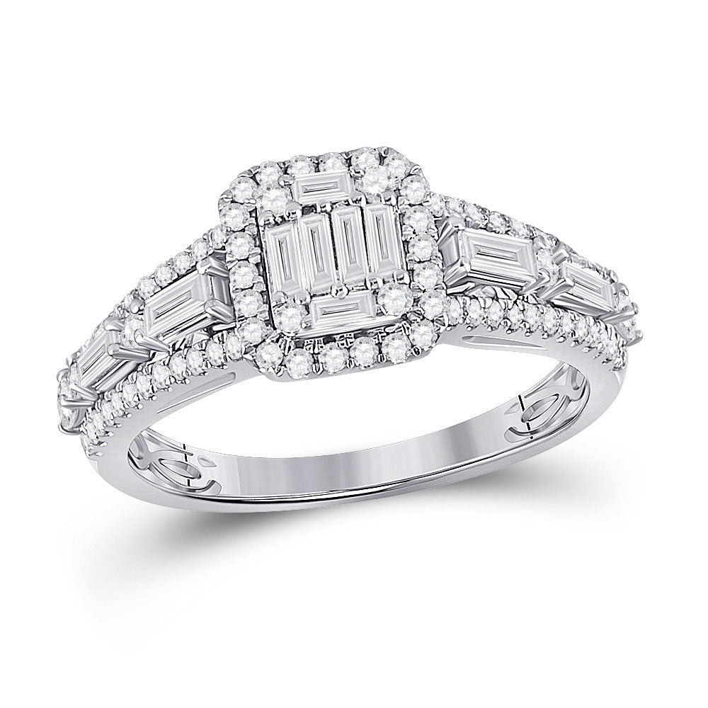 Keene Jewelers 14kt White Gold Womens Round Diamond Square Cluster Ring 7/8 Cttw