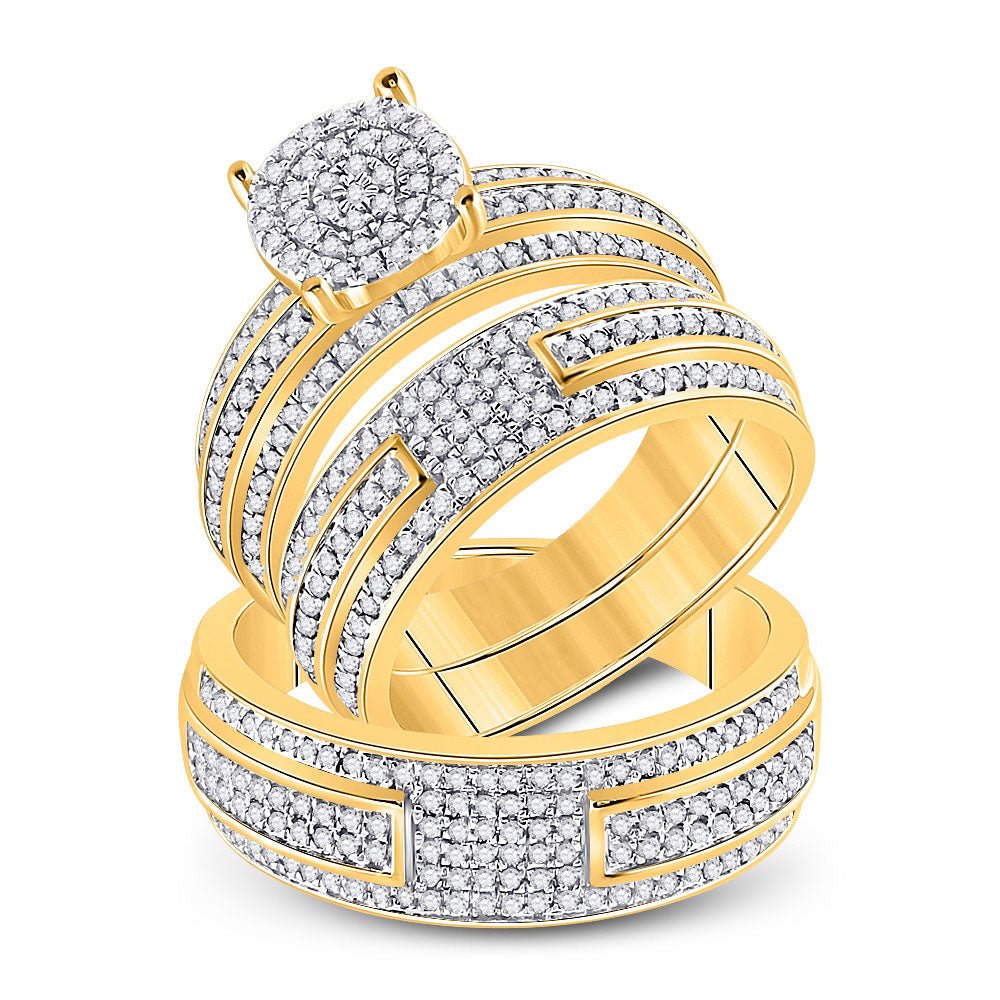 Keene Jewelers 14kt Yellow Gold His Hers Round Diamond Cluster Matching Wedding Set 1 Cttw