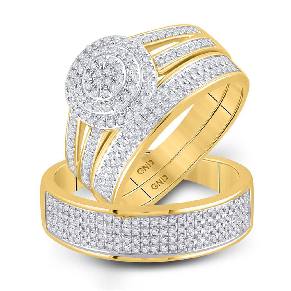 Keene Jewelers 14kt Yellow Gold His Hers Round Diamond Cluster Matching Wedding Set 3/4 Cttw