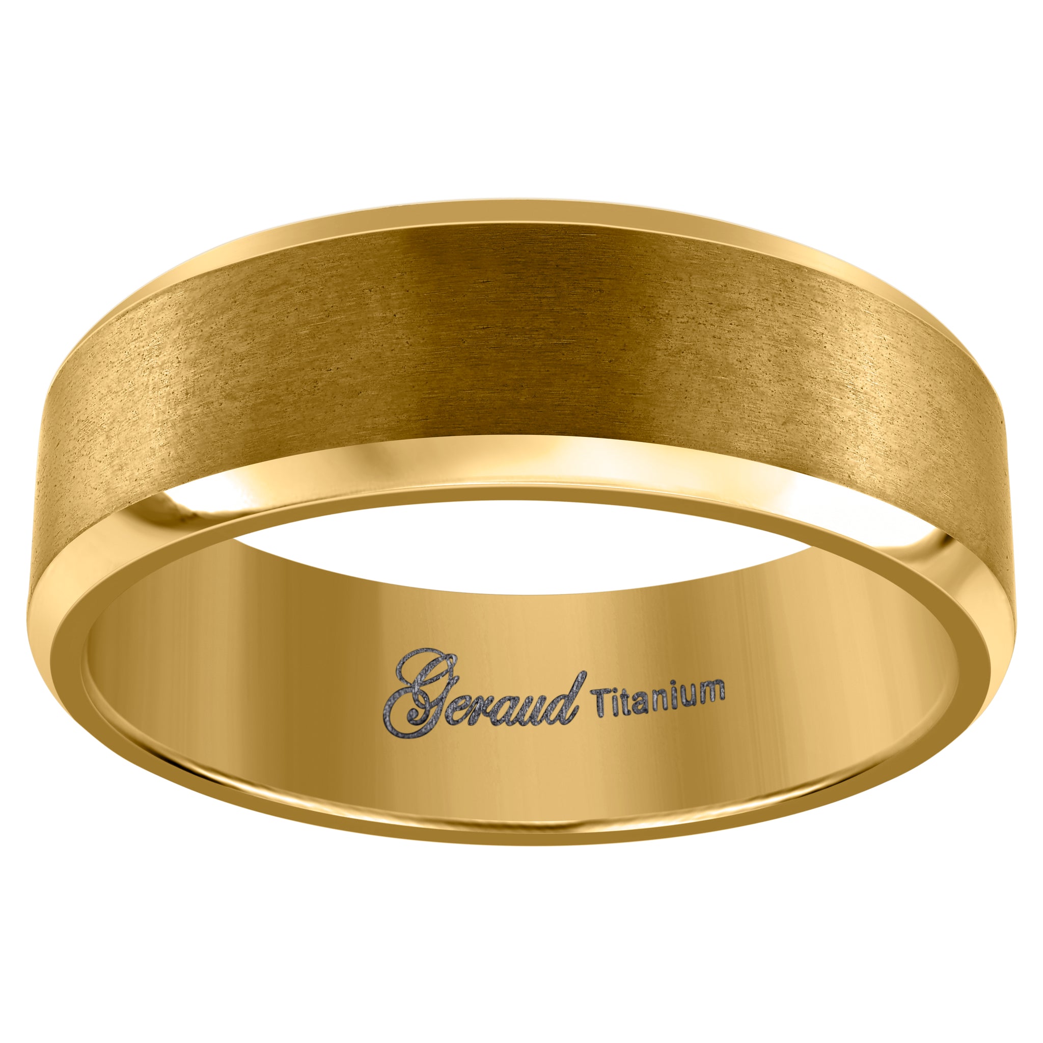 Keene Jewelers Titanium Gold Tone Mens Brushed Beveled Edge Comfort Fit Wedding Band 8mm