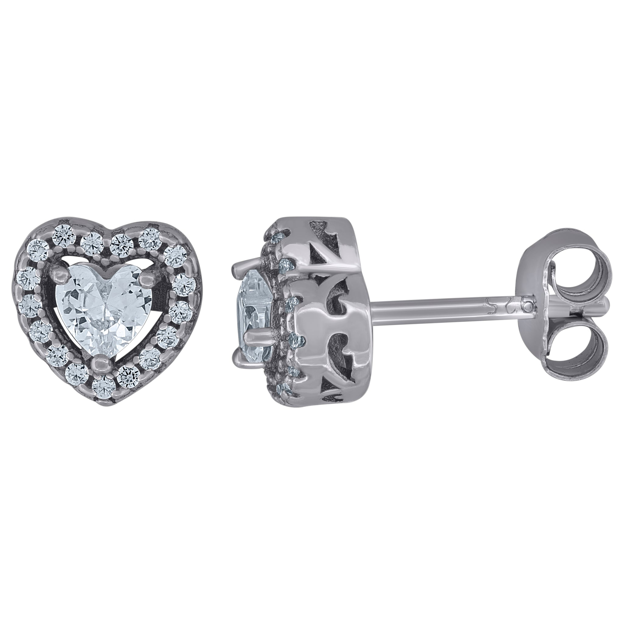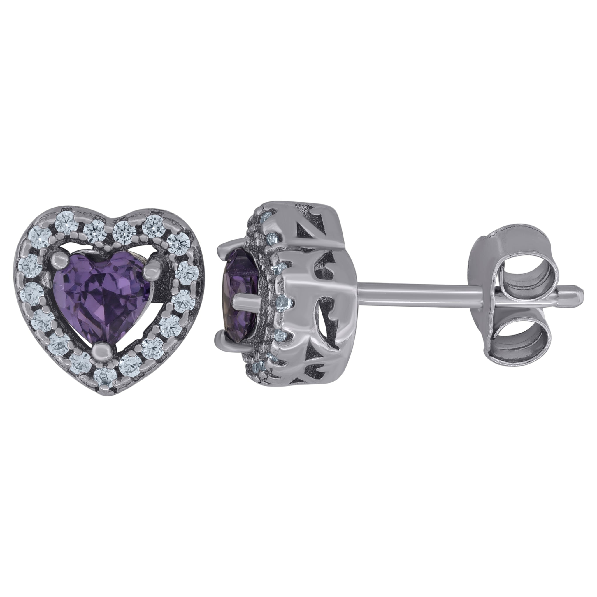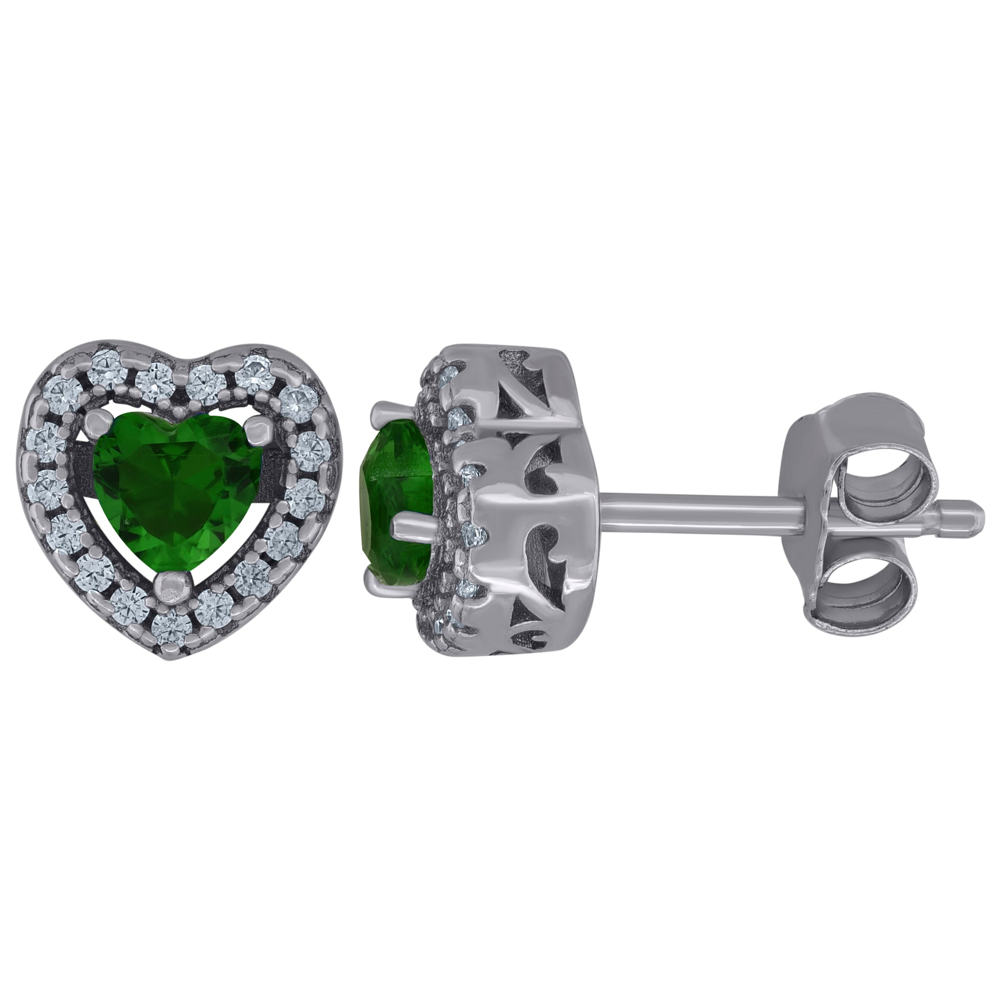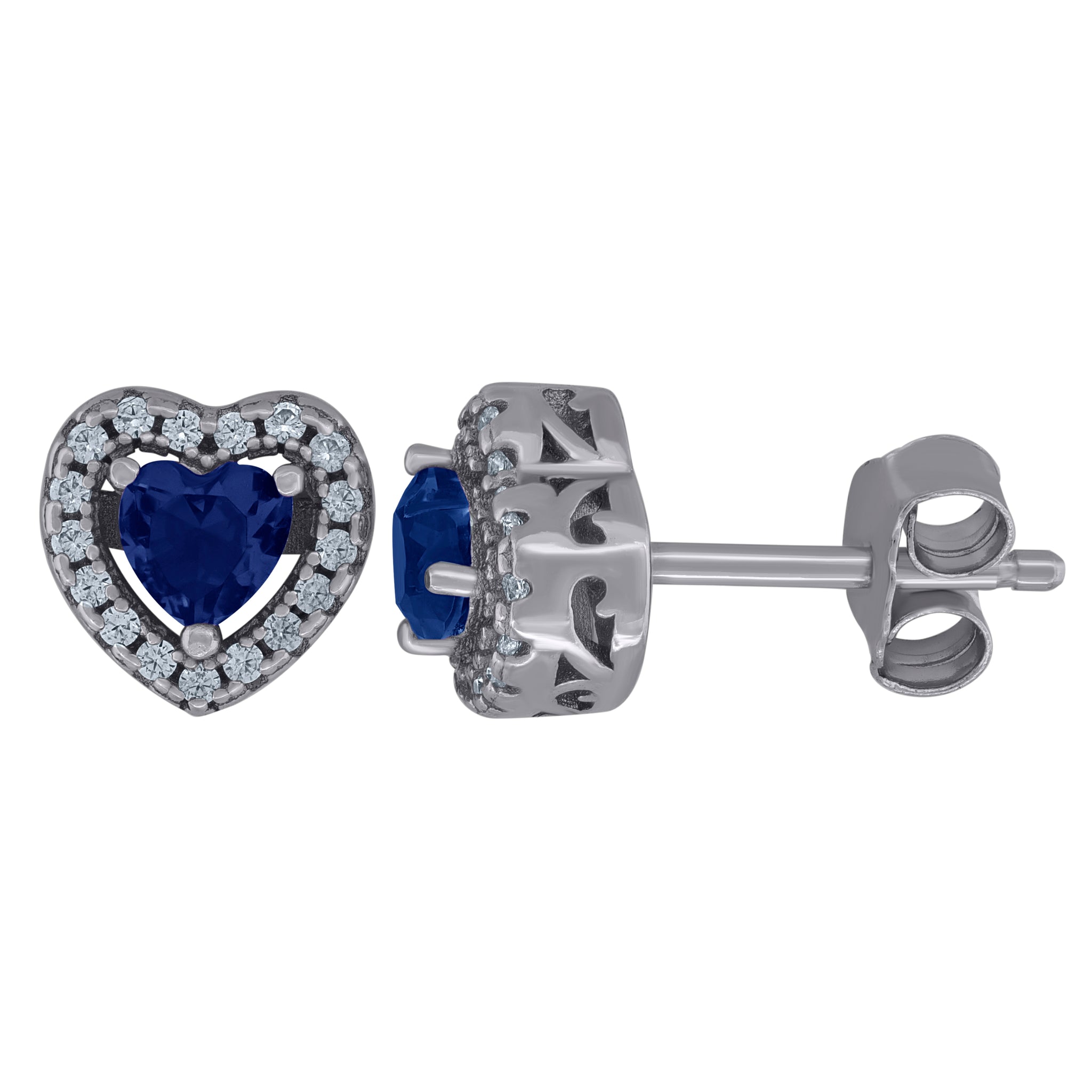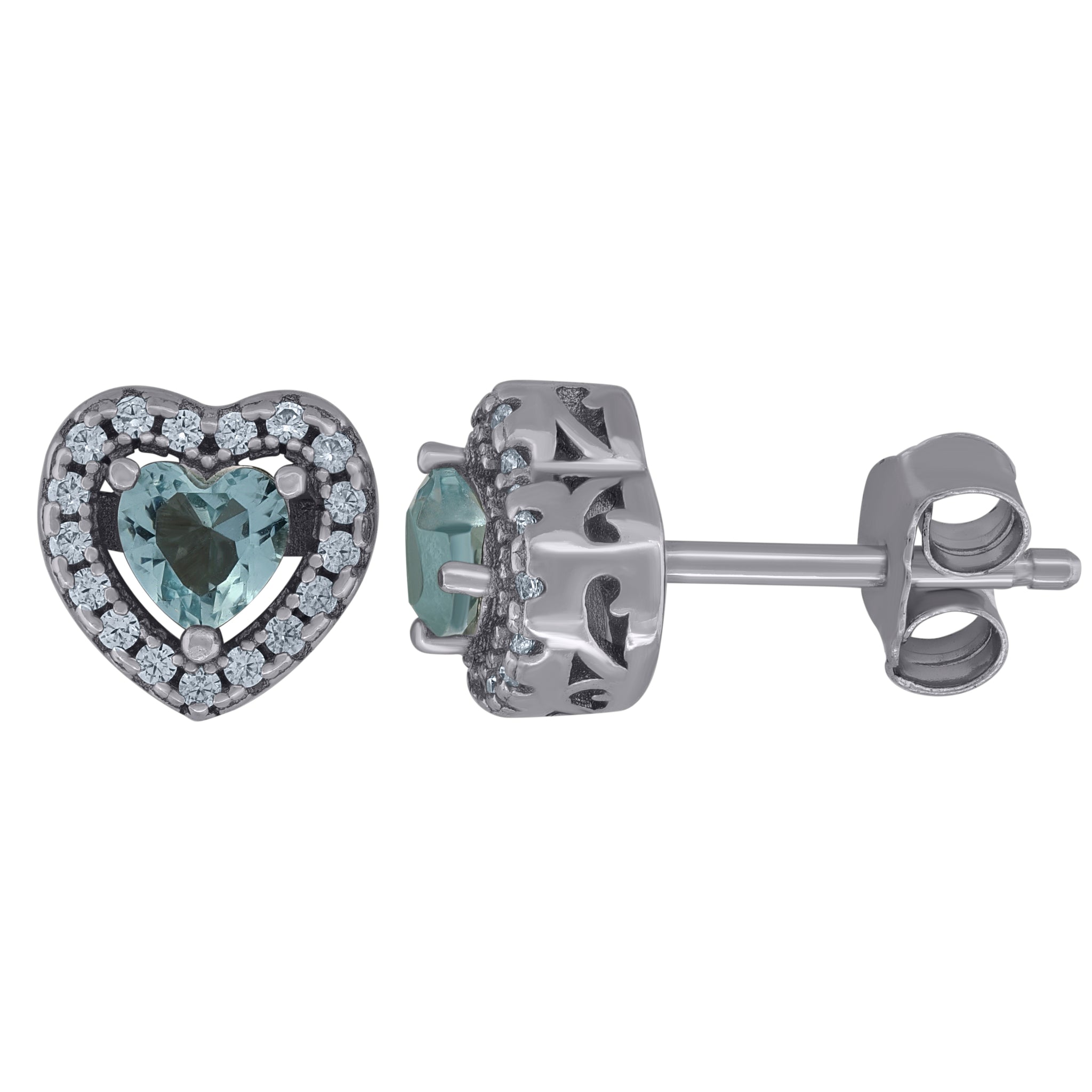 Keene Jewelers 925 Sterling Silver Womens Aqua Cubic Zirconia Heart Stud Earrings