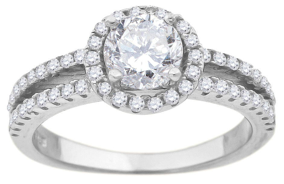 Keene Jewelers 925 Sterling Silver Womens Cubic Zirconia Halo Engagement Ring Size 6