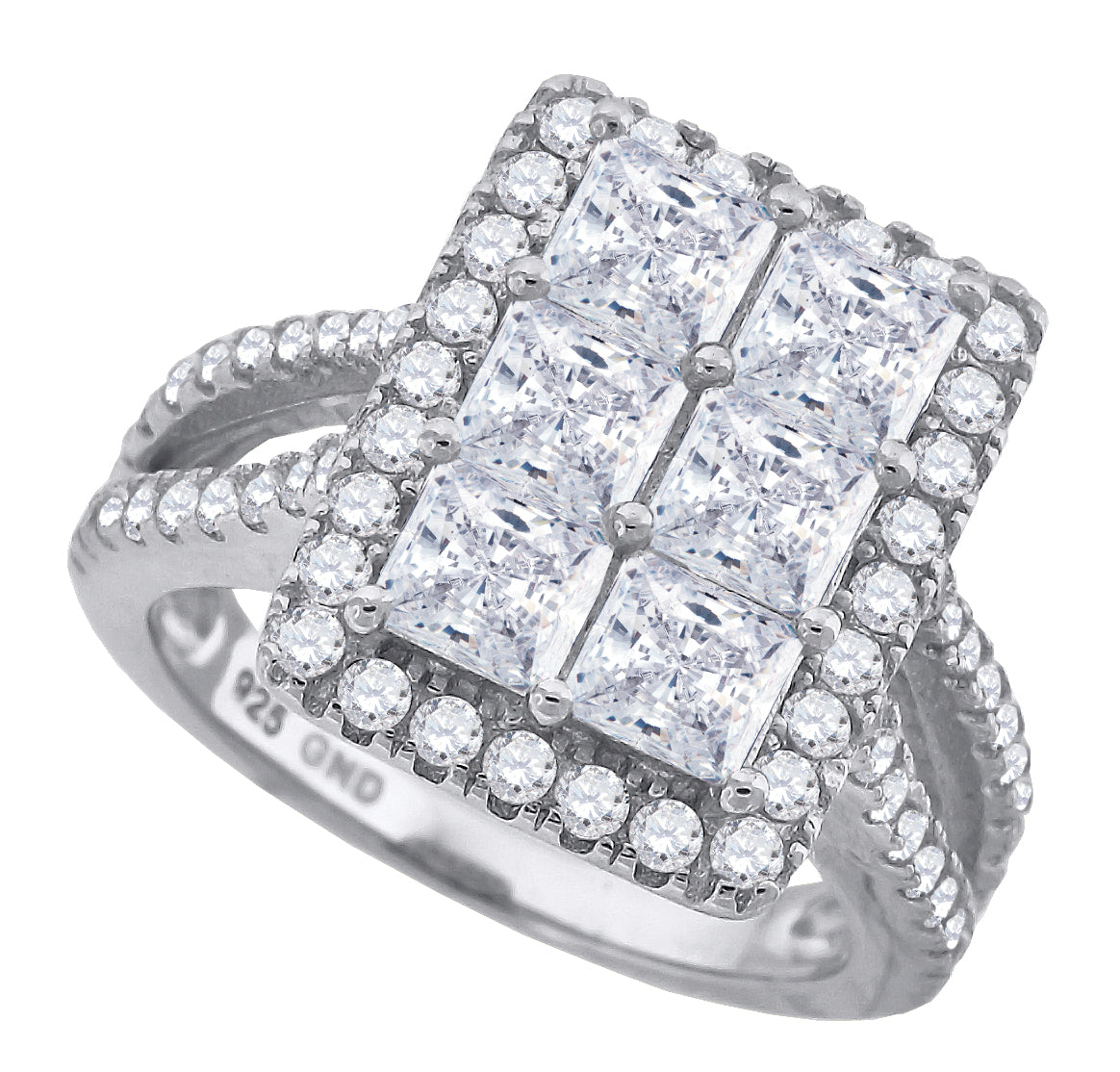 Keene Jewelers 925 Sterling Silver Womens Cubic Zirconia Rectangle Engagement Ring Size 6