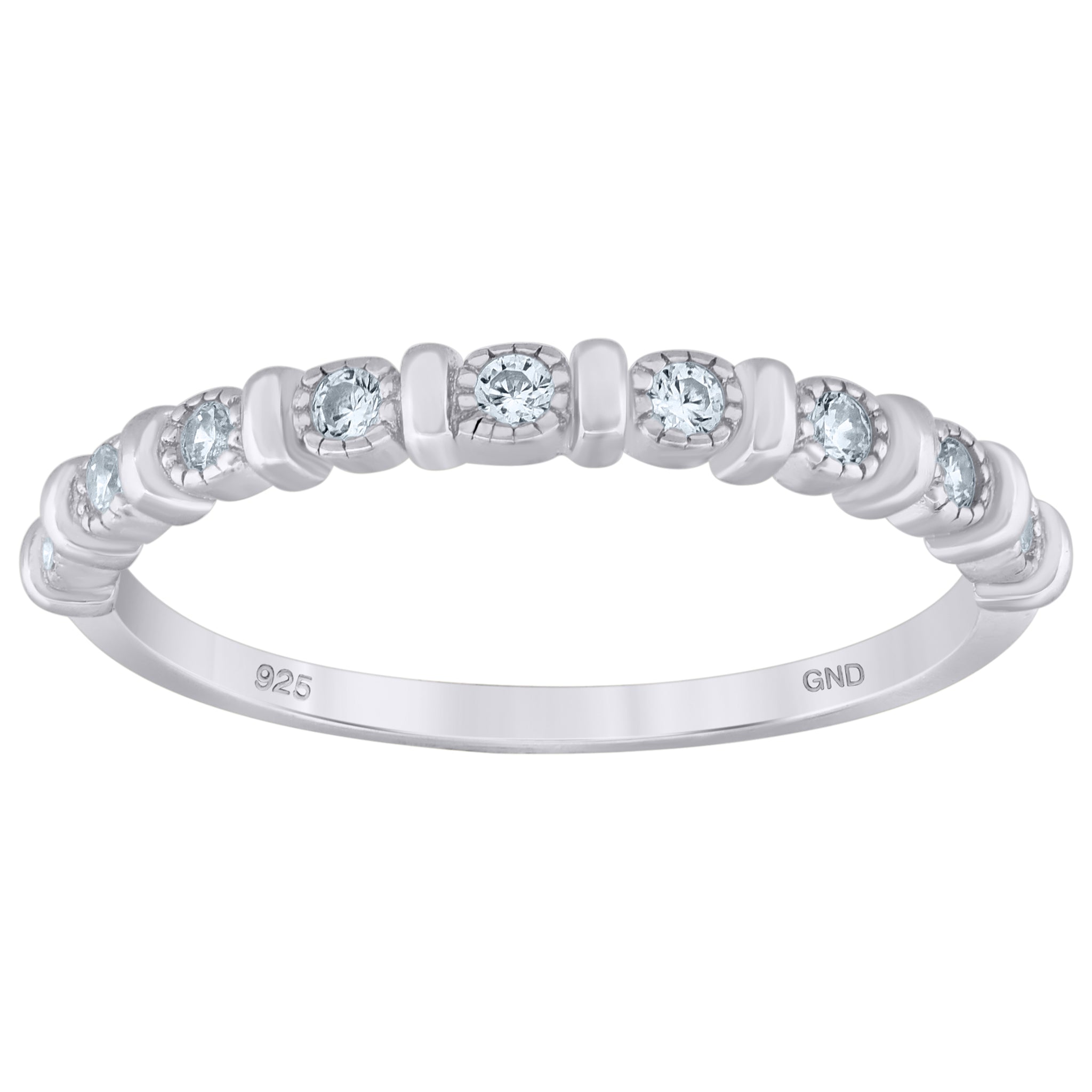 Keene Jewelers 925 Sterling Silver Womens Cubic Zirconia Semi-Eternity Wedding Band Ring Size 6