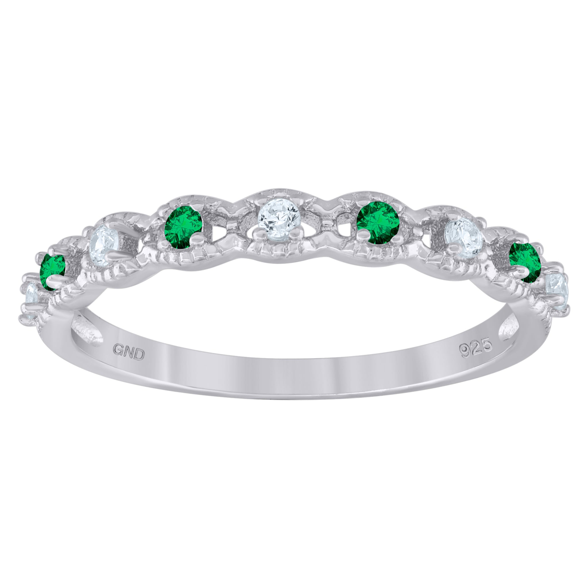 Keene Jewelers 925 Sterling Silver Womens Green Cubic Zirconia Semi-Eternity Wedding Band Ring Size 6