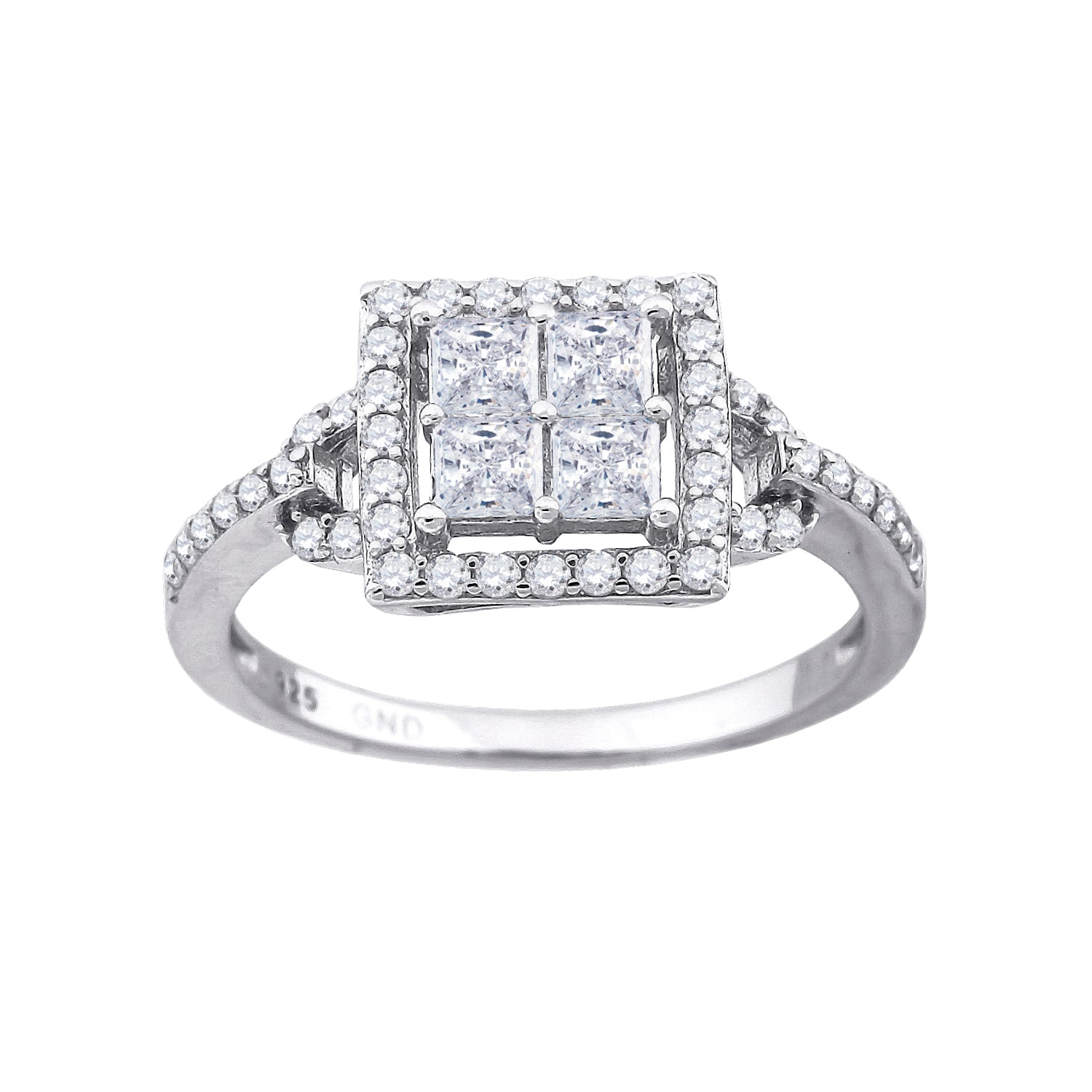 Keene Jewelers 925 Sterling Silver Womens Princess Cut Cubic Zirconia Square Head Engagement Ring Size 6