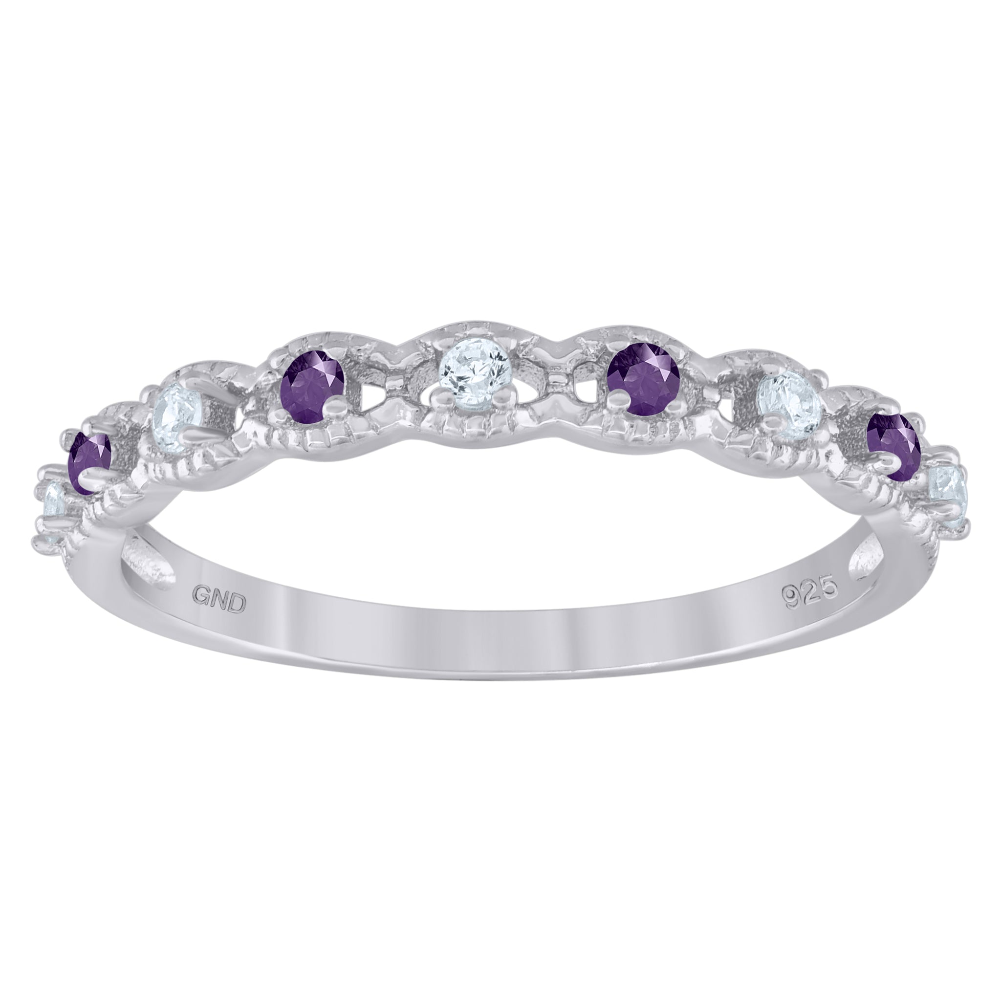Keene Jewelers 925 Sterling Silver Womens Purple Cubic Zirconia Semi-Eternity Wedding Band Ring Size 6