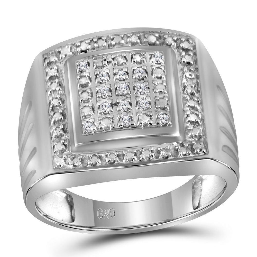 Keene Jewelers Sterling Silver Mens Round Diamond Square Frame Cluster Ring 1/10 Cttw - Size 9