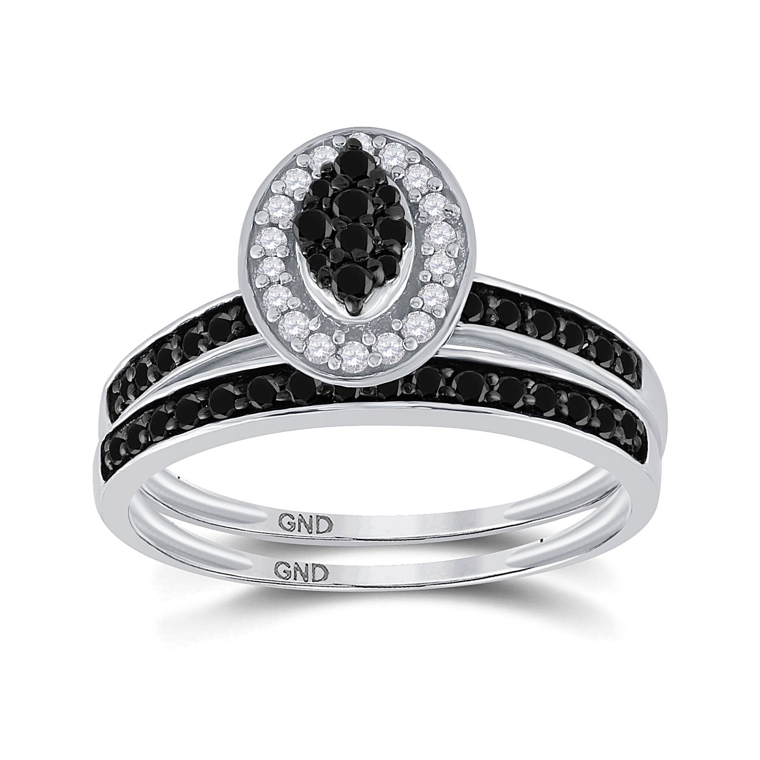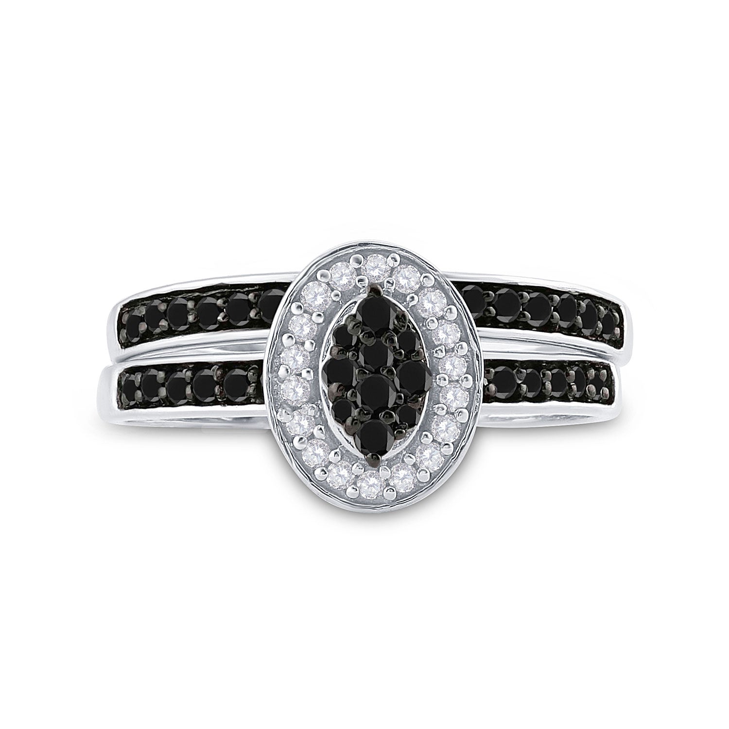 Keene Jewelers Sterling Silver Round Black Color Enhanced Diamond Bridal Wedding Ring Band Set 1/2 Cttw